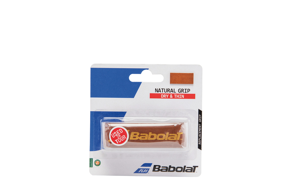 Babolat Natural Grip je zárukou dlouhé trvanlivost. Je vyroben z pravé kůže, jež mu dodává vynikající herní vlastnosti. Grip je suchý a velmi pevný, nabízí tak perfektní cit a kontrolu. Je o nejtenčí základní grip značky Babolat.